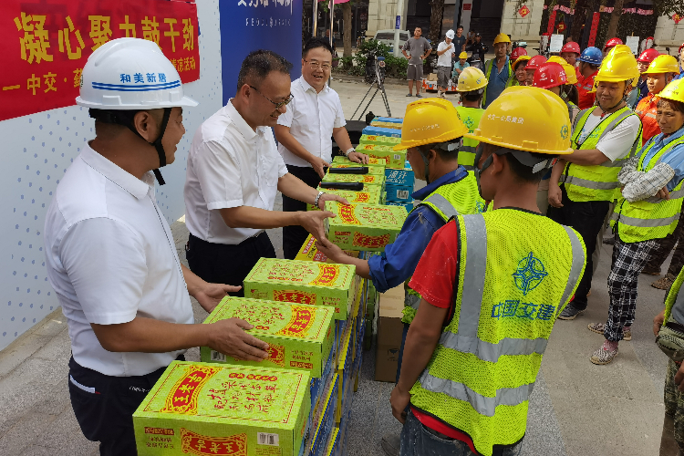 7月14日,中交海投黨委副書(shū)記、工會(huì)主席楊凱到中交·藥谷雅郡、定安項(xiàng)目開(kāi)展“送清涼”維權(quán)關(guān)愛(ài)活動(dòng),向奮戰(zhàn)在一線(xiàn)建設(shè)者送去了夏日清涼和組織關(guān)懷。